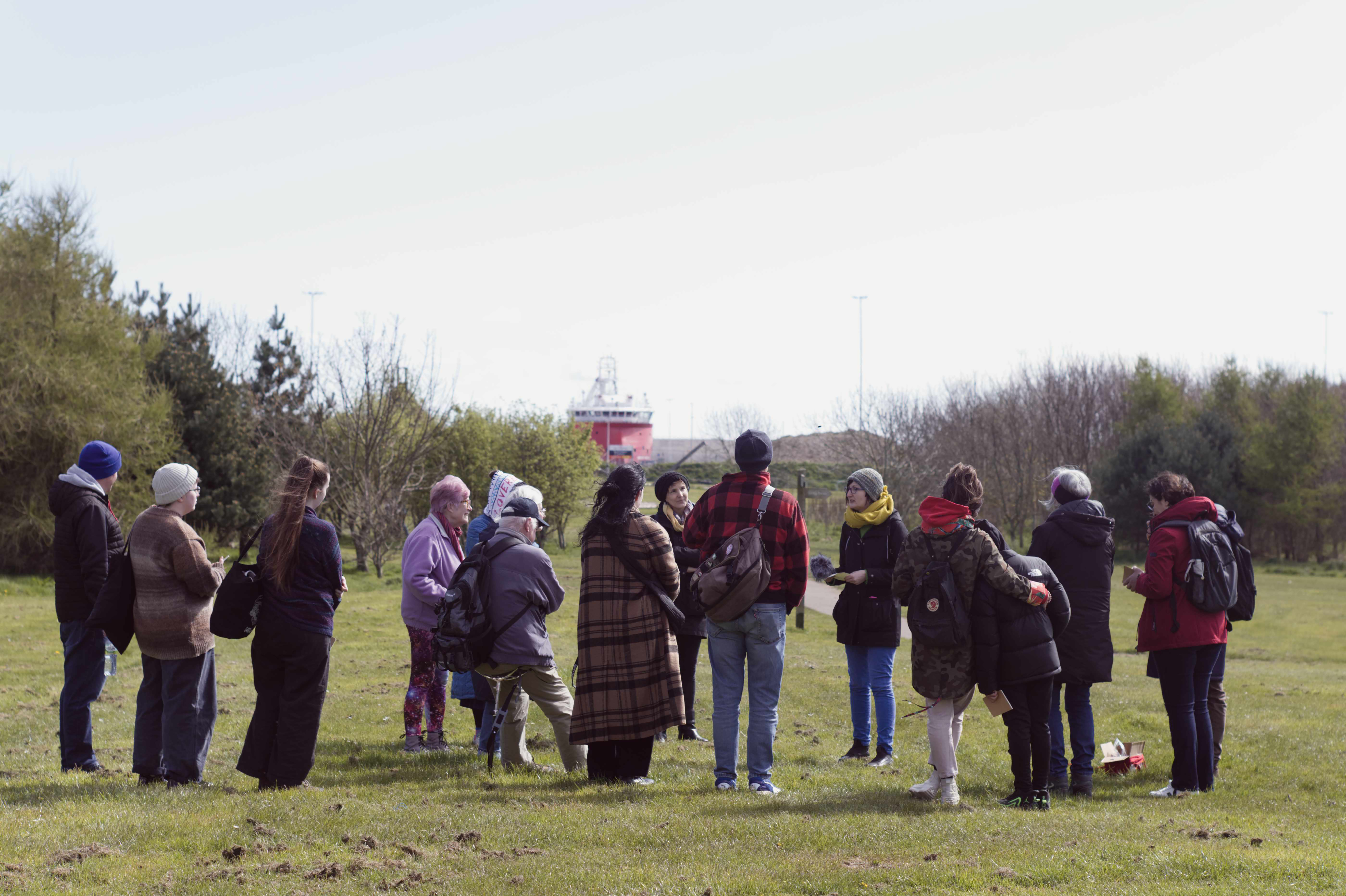 The soundwalks focused on St. Fittick’s Park in Torry, Aberdeen – a site partially earmarked for development as an energy transition zone. Sound walking is a practice of listening while walking. Each walk was an artwork involving careful attention to the park and its human and nonhuman inhabitants. Participants followed specific routes that drew attention to the diverse sounds emanating from different features around the park and travelling across it.