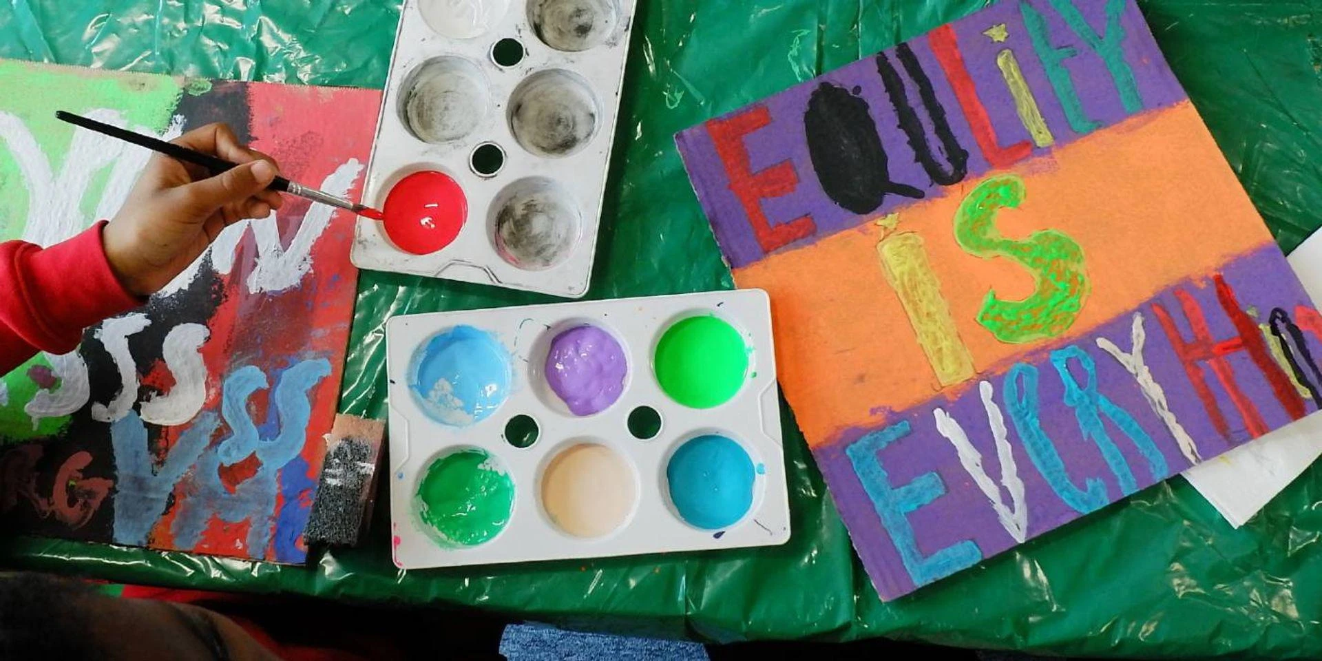 Students also created large-scale artwork to send messages about anti-racism, children’s rights, disability awareness, and climate change.