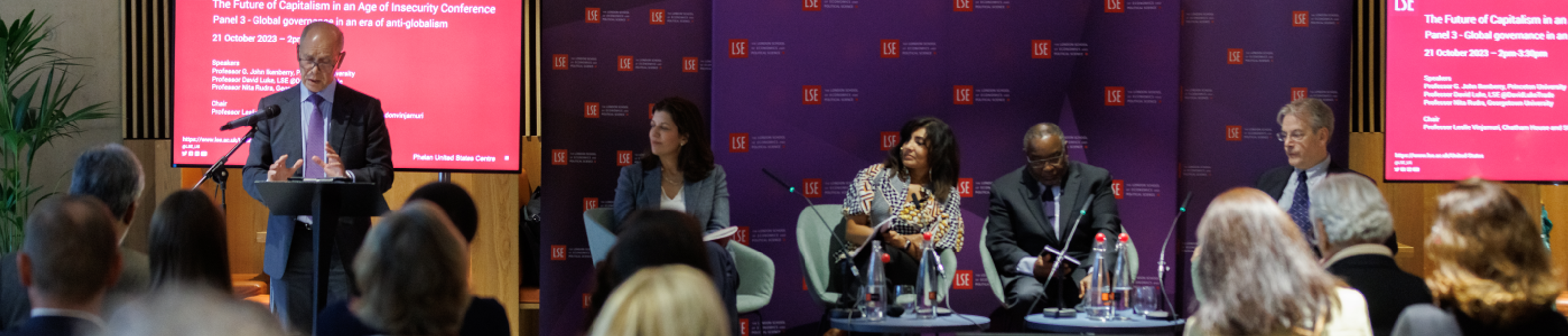 Held on 20 and 21 October, 2023 in the Great Hall of the Marshall Building at LSE, The Future of Capitalism in an Age of Insecurityconference brought together leading scholars and analysts to examine the effects of geopolitical turmoil, democratic discontent, anti-globalism, and technological change on capitalist economies. Panelists explored the role that governments, businesses and global institutions might play in helping to negotiate these challenges at the local, national, and global levels.